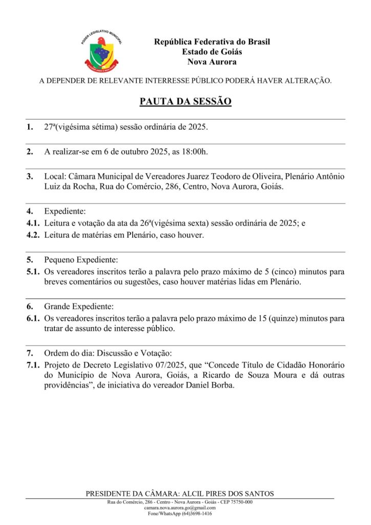 Convite para a 27ª Sessão Ordinária de 2025.