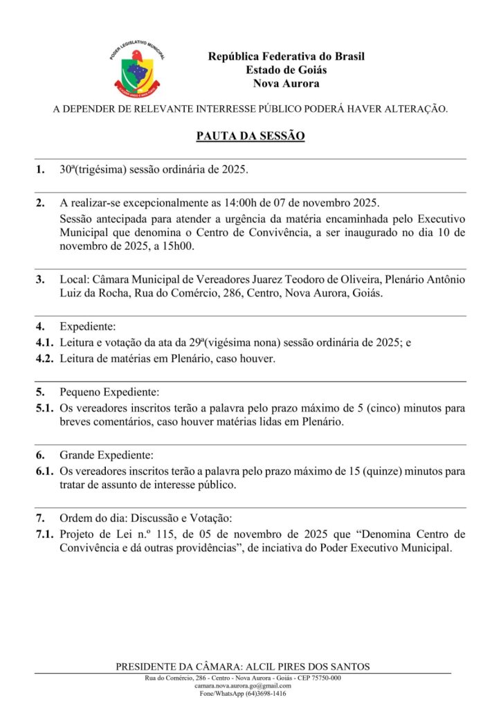 Convite para a 30ª Sessão Ordinária de 2025.