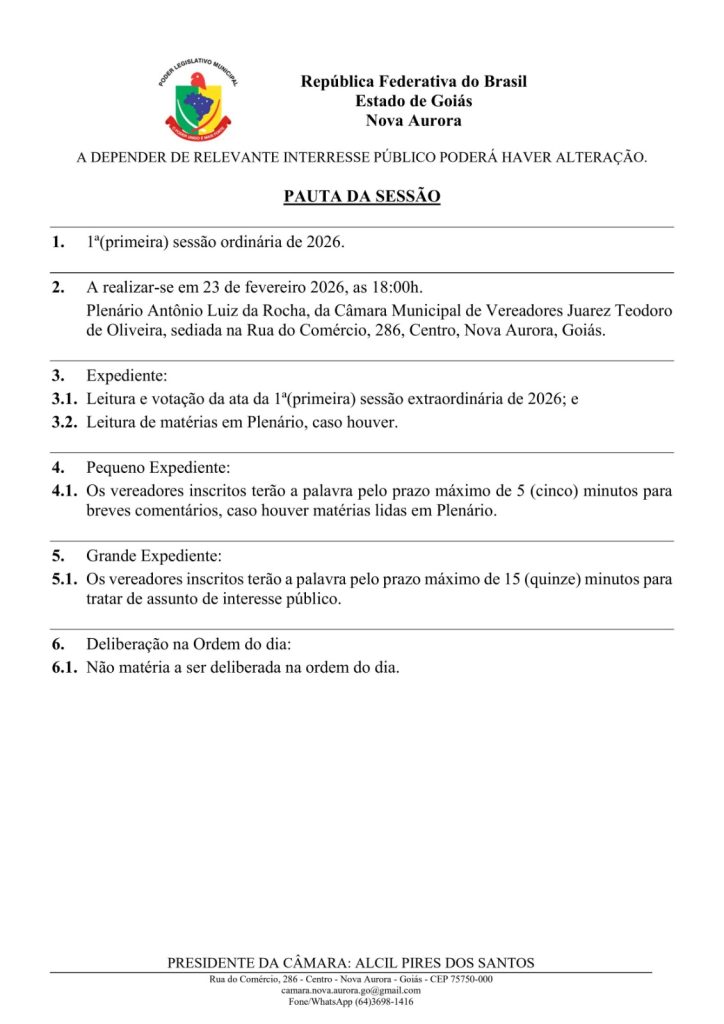 Convite para a 1ª Sessão Ordinária de 2026.