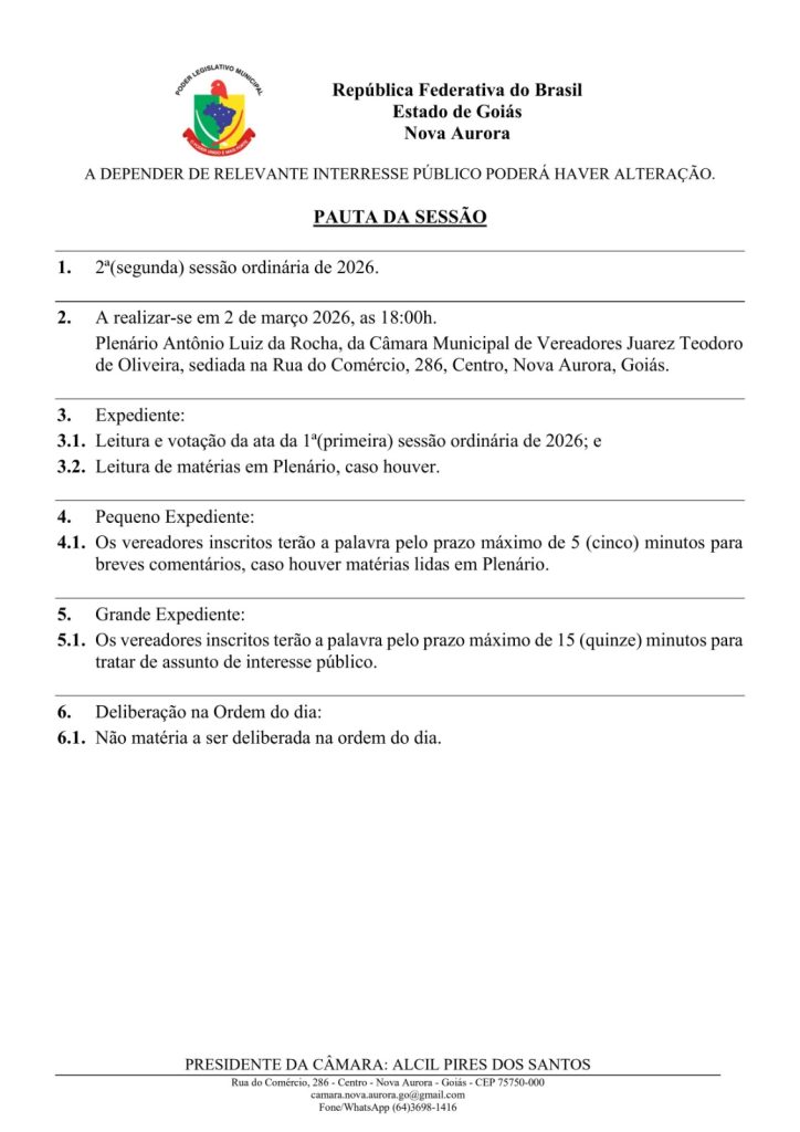 Convite para a 2ª Sessão Ordinária de 2026.